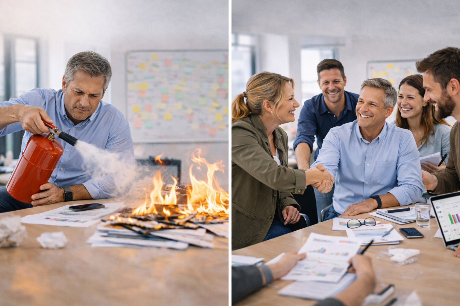 Warum Führungskräfte im Dauer-Feuerlöschen stecken – und wie Teams wieder klar zusammenarbeiten